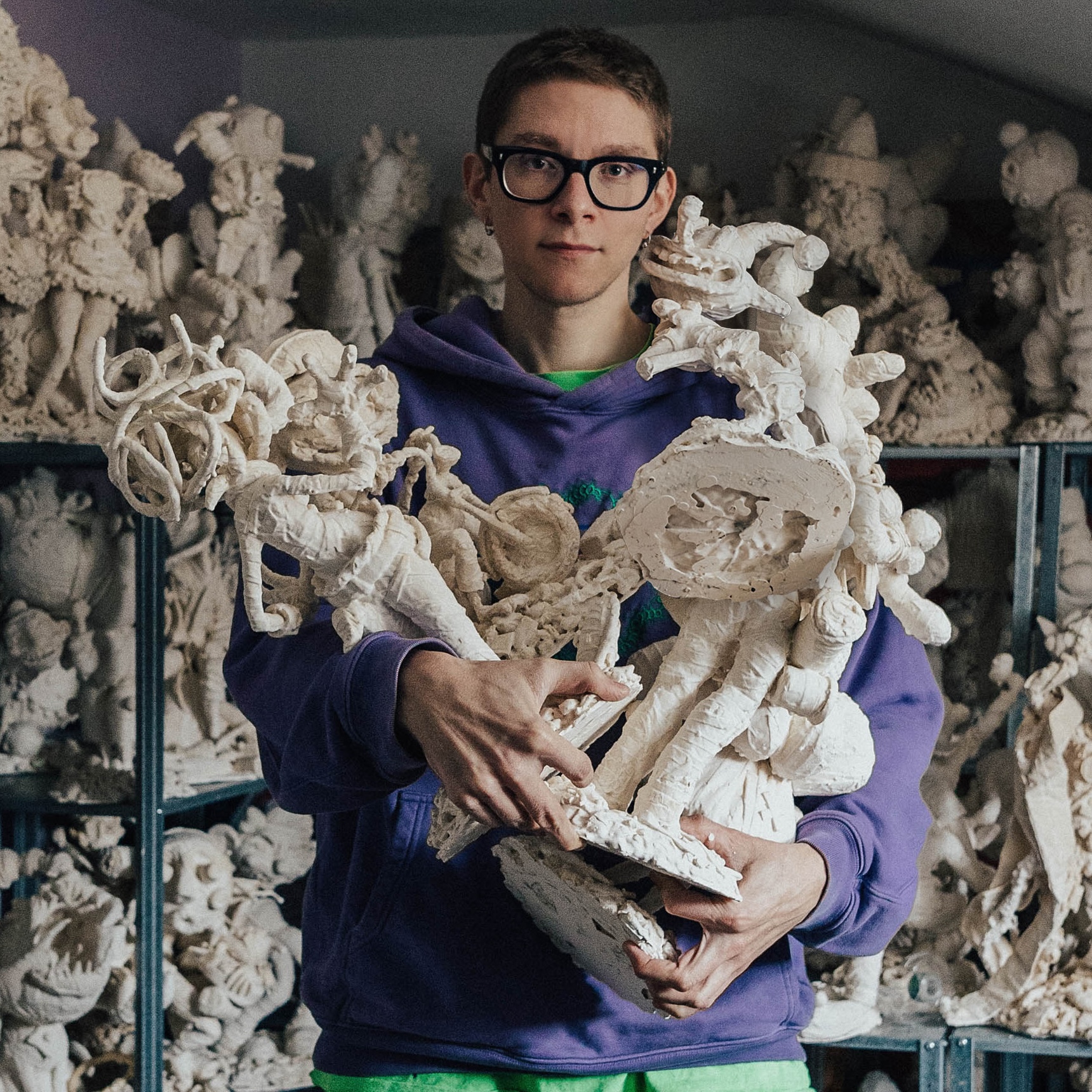Card’s work is celebrated for its playfulness and rich world-building and his creations have been featured in The New York Times, Vogue, Dazed & Confused, and W Magazine and his extensive client list includes Dior, Balenciaga, Chanel, Comme des Garçons, Gucci, Nike, Calvin Klein, and many others.