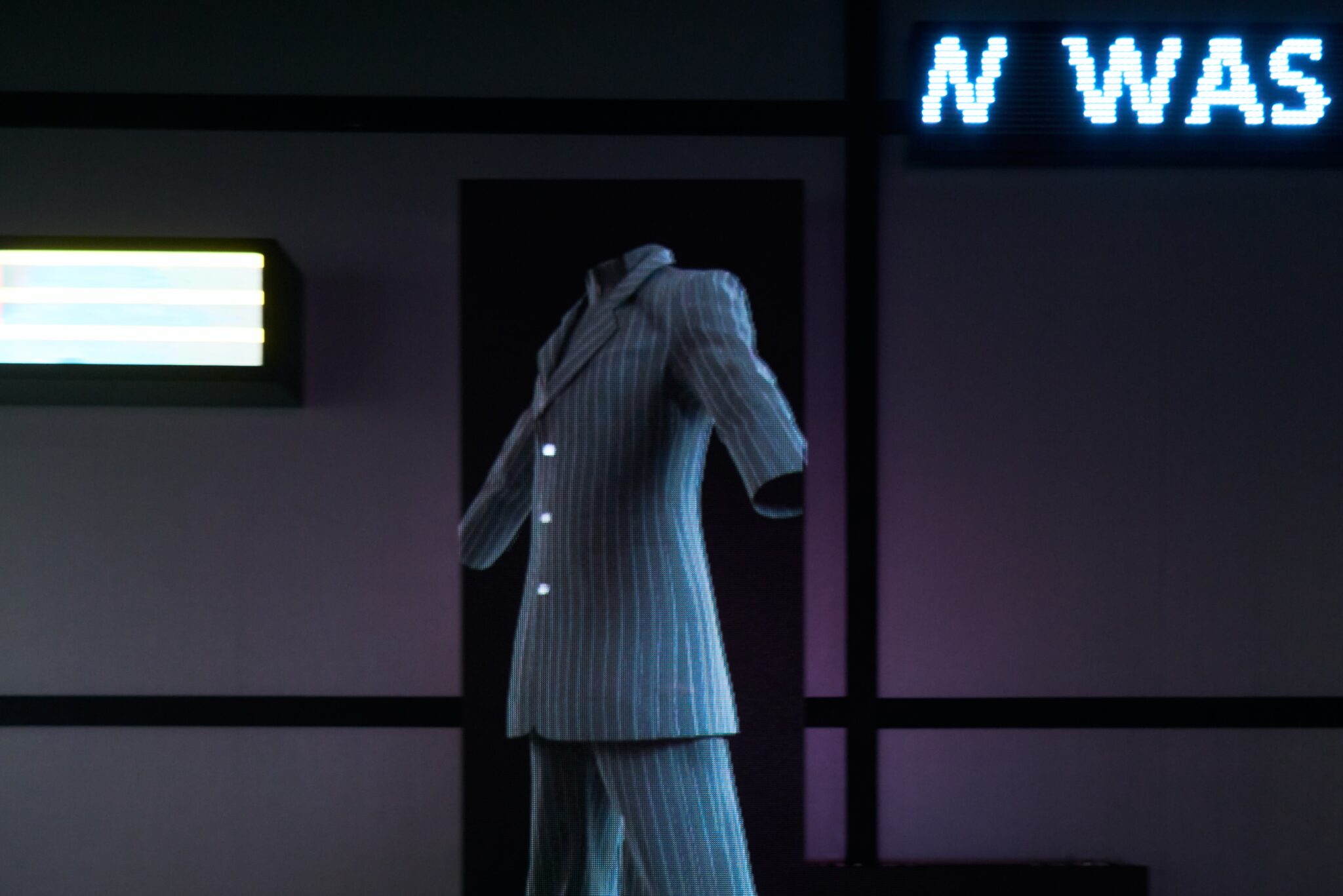 2025 LVMH Prize finalist Alain Paul teams up with Shanghai-based visual artist and Fashion Photographer Liu Shuwei, to explore time and emotion through illuminated lightbox installations, marrying Paul’s dance-inspired tailoring with Liu’s mastery of light and shadow.