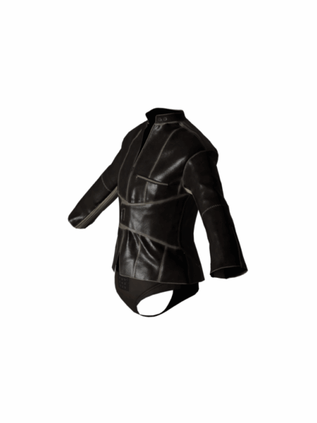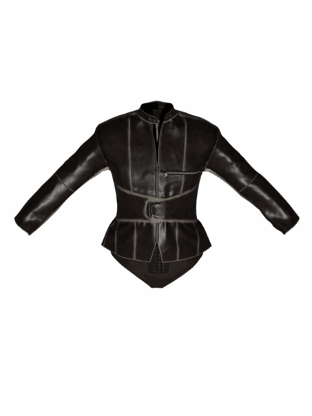 Crafted from full-grain cowhide leather and contrasted with soft cotton corduroy panels, this black jacket fuses structured tailoring with rich textural contrast. Designed with a wide adjustable belt to define the waist, it creates a sharp, figure-enhancing silhouette. The look is finished with a full front zip closure, angled chest zip pocket, zipped cuffs, and signature contrast stitching, merging refined craftsmanship with a modern, edgy attitude.