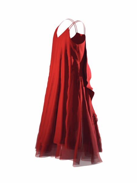 Contrasting compositions created in black and white take inspiration from the costumes of Beach Birds, the 1991 ballet by Merce Cunningham whose choreography serves as a continual influence for Alain Paul. The dancer embraced notions of spontaneity and improvisation and defied the preordained rules of traditional choreography. The approach takes physical form in prints informed by the aereal sketches Cunningham would draw for his choreography. Additionally, tops, skirts and dresses fully embroidered from tights pay homage to his affinity for legwork in accumulations that evoke the impression of le corps de ballet moving in synchronisation.